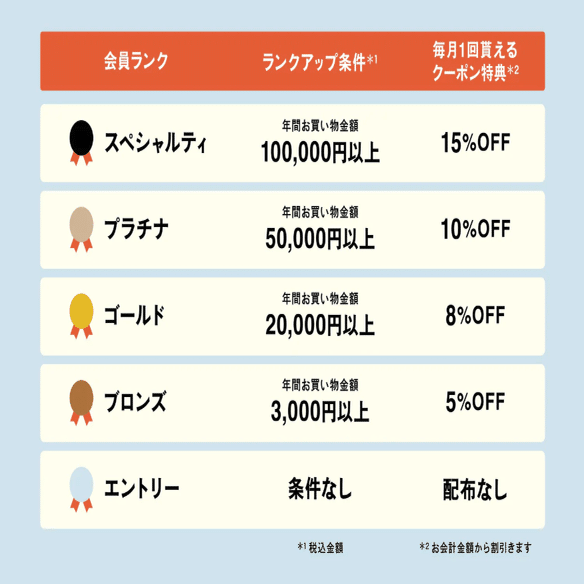 上田:2022年にオンラインにおける会員プログラムをスタートし、2024年にリニューアルをしました。2022年以前はスタンプカードが代わりになっていました。その当時はまだ店舗数も10数店舗とお客様の購買データなどを追いかけることをしていなかったのですが、店舗数の増加とECを今後拡大していくことを考え、会員プログラムをスタートしました。
