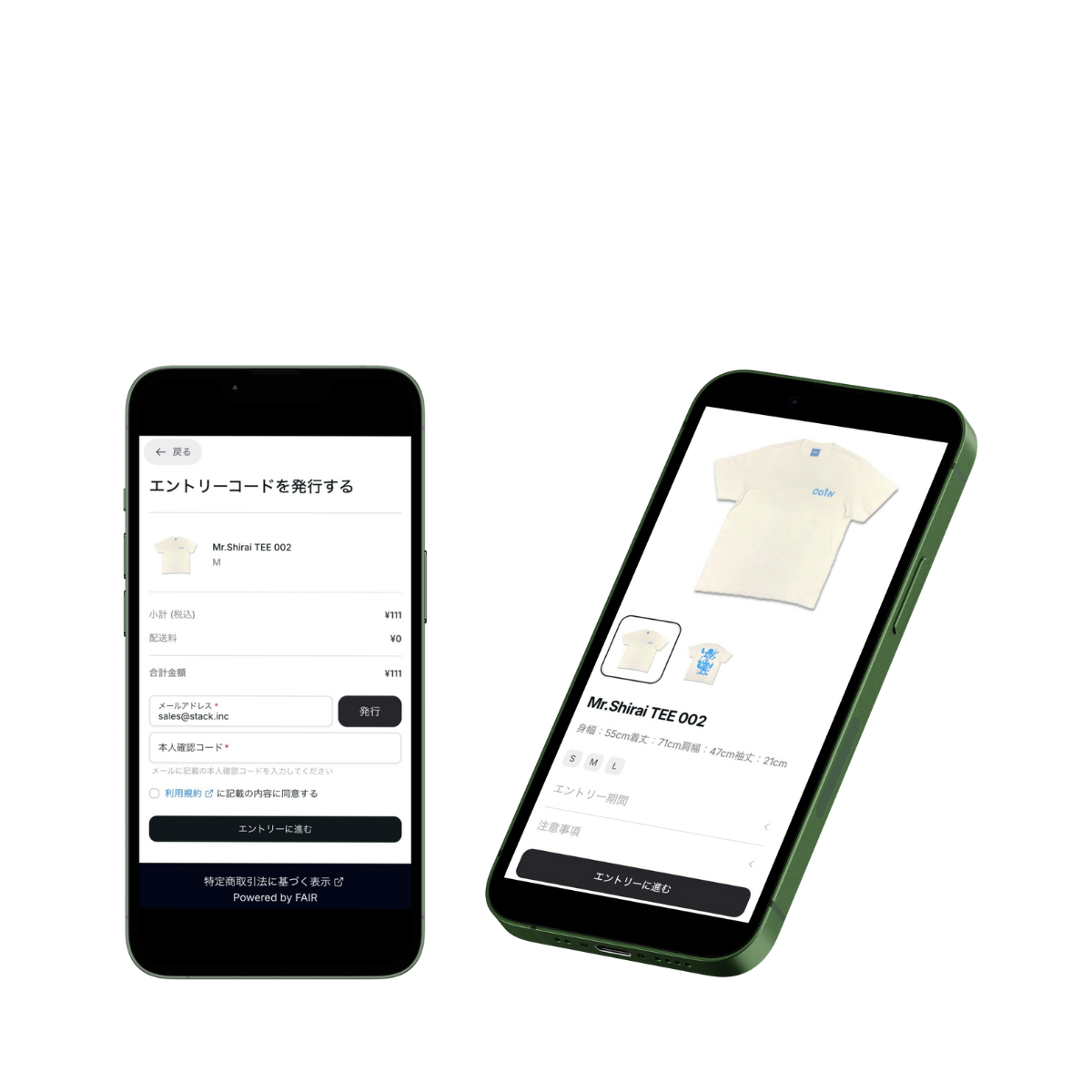 FAIRに商品を登録することで簡単に抽選販売を実施することができます。大量の応募に対応できるインフラ、ボット対策、スムーズな抽選処理のためのクレジットカードの事前登録などに対応します。