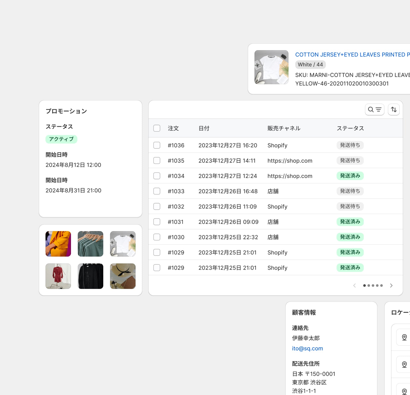 従来のシステムではチャネルごとに在庫管理が行われており、効率的な運用が困難でした。SQは、店舗やECサイトなど異なる販売チャネルの在庫を一元管理します。この方法により、在庫の最適配分が可能となり、在庫消化率が向上し、売上増加に繋がります。